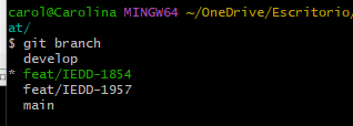 por último, para listar todas las ramas que se encuentran en el repositorio git branch la rama actual o la que estaremos trabajando se verá resaltará por un asterisco