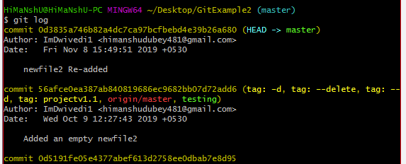 El segundo comando nos mostrará una lista de todas las stashes que sean creados, junto con sus descripciones.