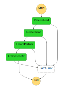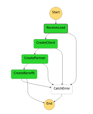 End: trueAhora ya tenemos las funciones Lambda de cada paso del State Machine, tenemos la API que escribe en la DB y tenemos el endpoint expuesto para poder realizar requests.