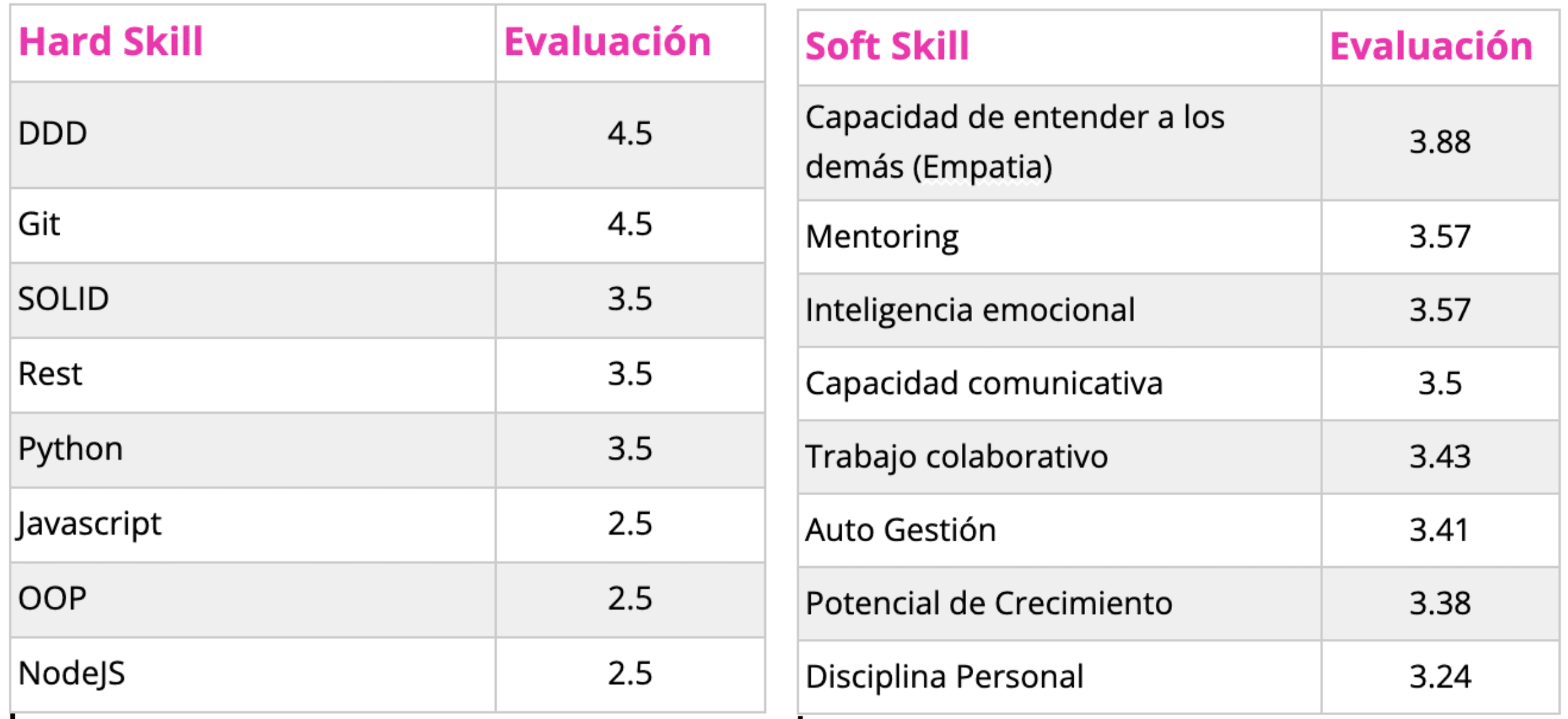 Para comenzar, cada profesional de Kranio pasa por una evaluación inicial donde identificamos sus habilidades actuales, fortalezas, áreas de mejora y metas profesionales. Este proceso colaborativo se realiza con la ayuda del equipo de Performance Management, el líder técnico del profesional y el profesional mismo.