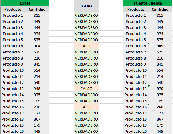 Es fundamental que la fuente de datos que se utilice para las transformaciones y para el resultado manual sea la misma. De no ser así, difícilmente se llegaran a los mismos resultados.